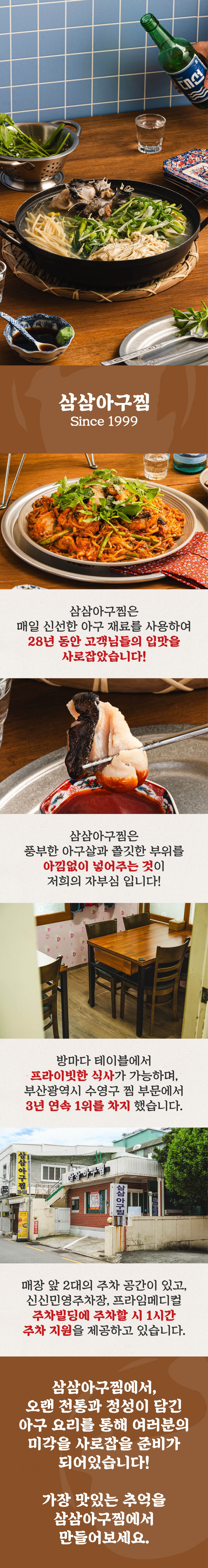 다양한 아구 요리를 선보이는 저희 삼삼아구찜은